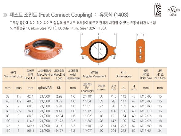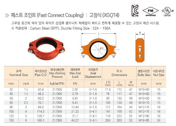 ※ 적용범위 : Carbon Steel (SPP), Ductile Fitting Size : 32A ~ 150A