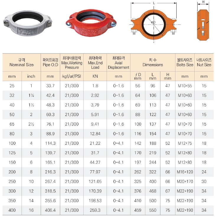 ※ 적용범위 : Carbon Steel (SPP, S40), Ductile Fitting Size : 25A ~ 400A