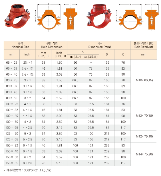 ※ 적용범위 : Carbon Steel (SPP, S40) Size : 65A ~ 150A